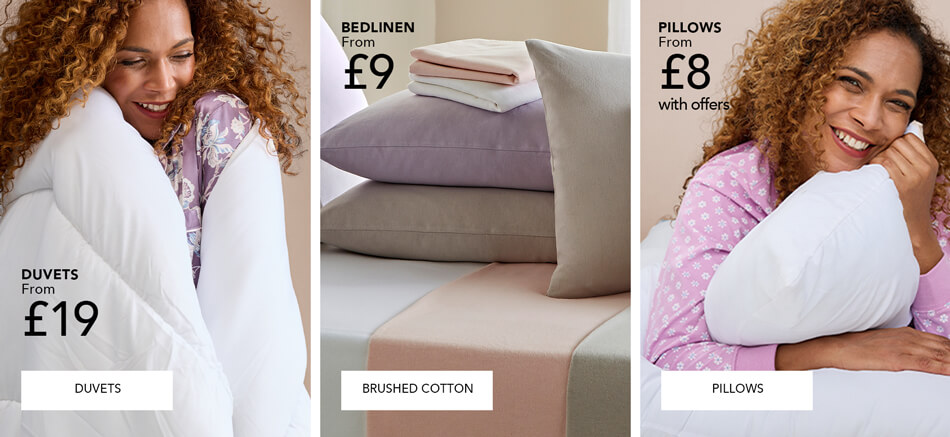 Snuggle under our high tog duvets, rest easy with your choice of soft or supportive pillows, and stay super cosy with warm brushed cotton bedding. Comfort from top to toe.