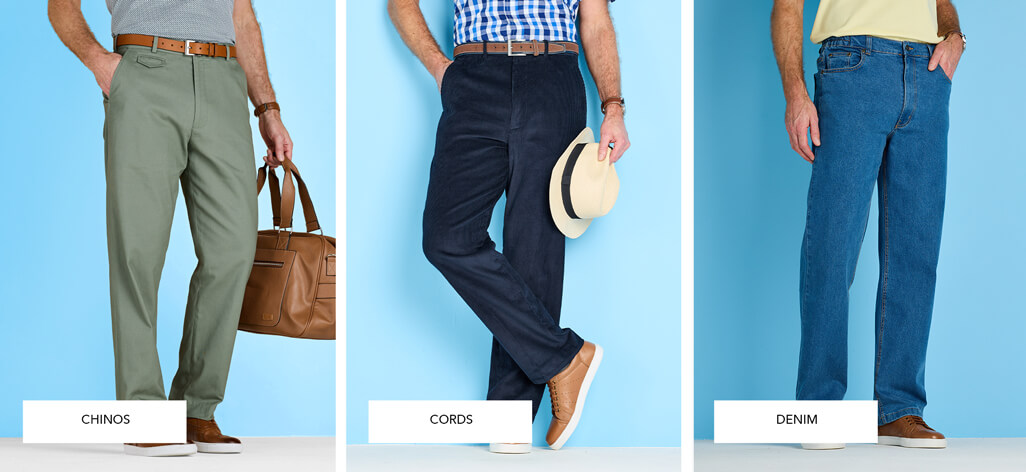 From jeans and chinos to formal styles, discover trousers designed for all-day comfort. Flexible fits and elasticated waists make them easy to move in and effortless to wear.