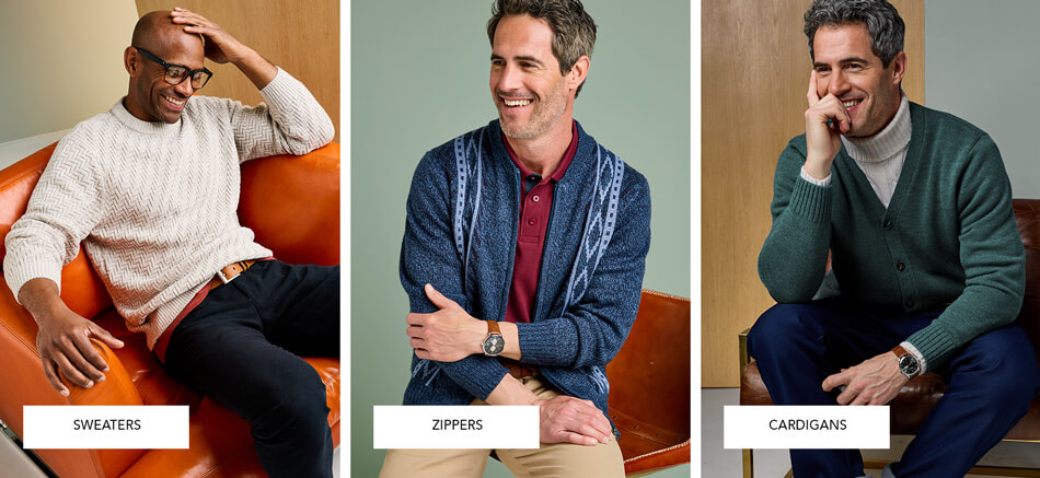 Layer on style and warmth with our collection of mens's jumpers, cardigans and zippers. A great choice of colours, sizes and prices that'll warm you up.