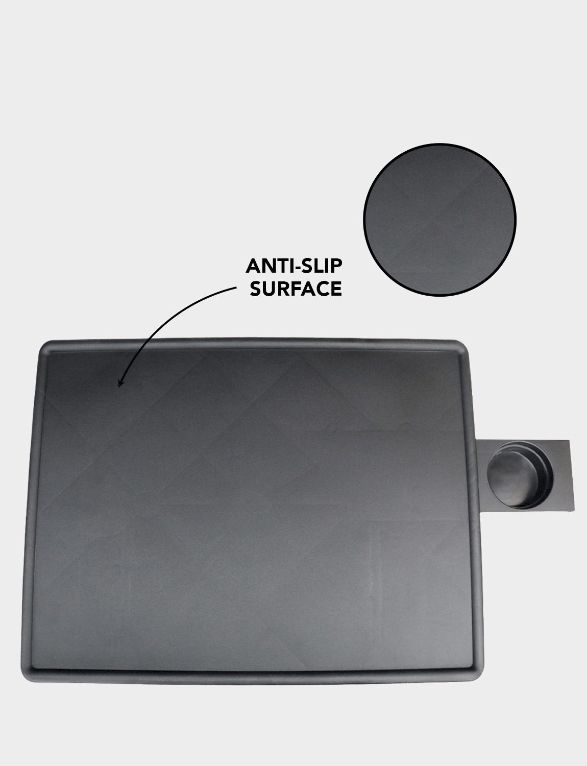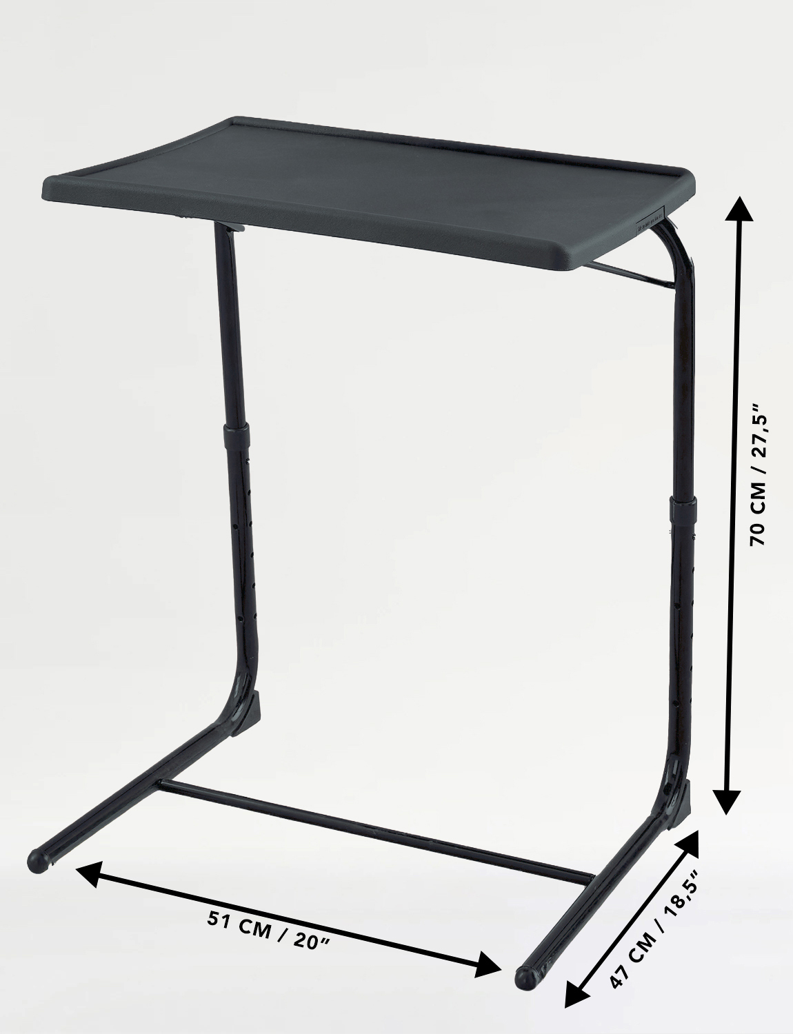 New and improved and always super useful folding table. Packed with features including a wipe-clean grippy tray top with anti-spill raised edges, cup holder, reinforced tubular frame with stabiliser bar, 3-way adjustable level and 6 height adjustments - surely perfect to suit any shape or size!