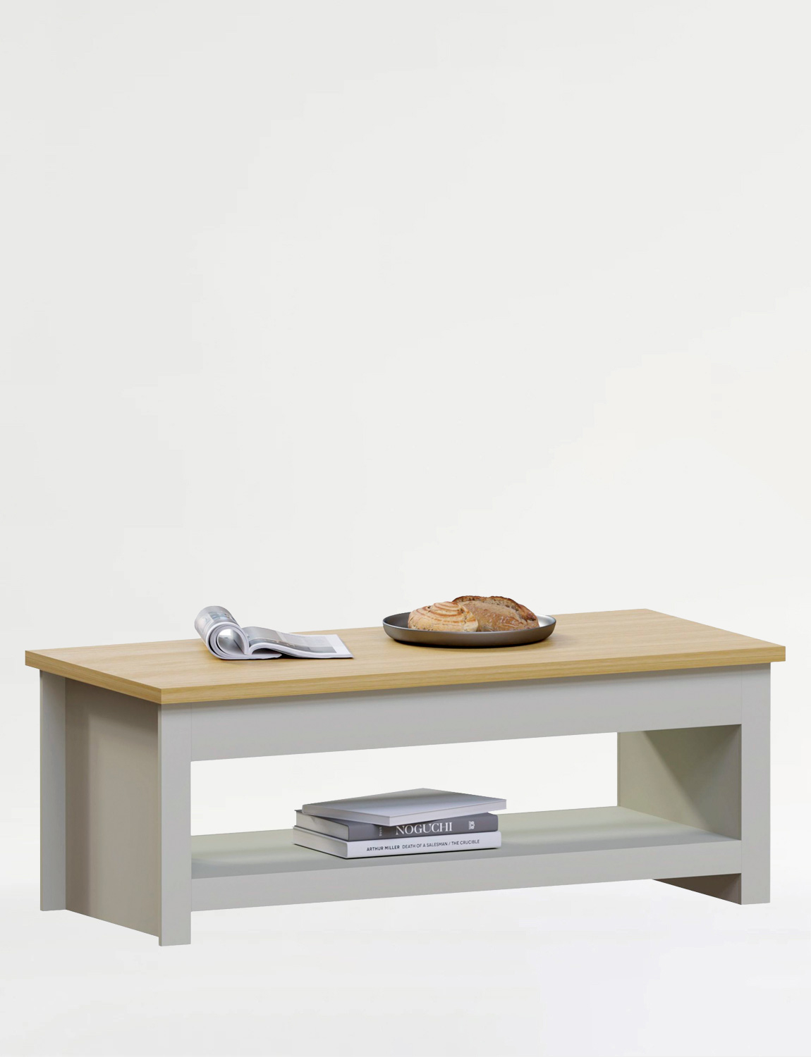 A lovely strong table perfect for your morning coffee! Finished in a neutral grey with an oak effect top, this easy-to-assemble table is a smart addition to any home.