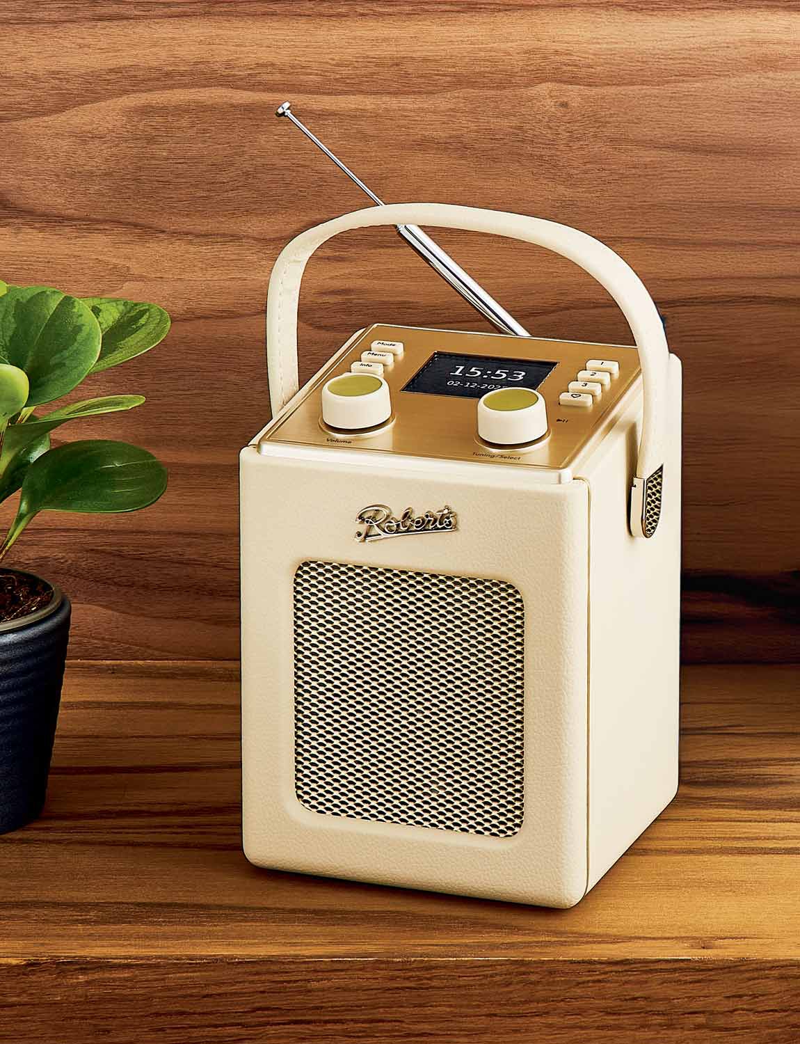 With an acoustically tuned real wood cabinet that’s hand-finished in leather cloth, DAB, DAB+ and FM, 40 radio pre-sets, Bluetooth, headphone socket & stereo line-in, an easy to navigate full-colour screen and built-in charger for rechargeable AA batteries.