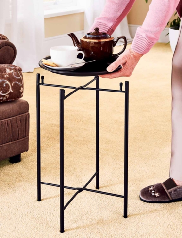 Always have somewhere to put the tray down! Bring in your dinner or snacks on the tray and place on the easy access sturdy frame to be always ready at your service! And when you’re finished – simply lift up and take the tray away! All metal.