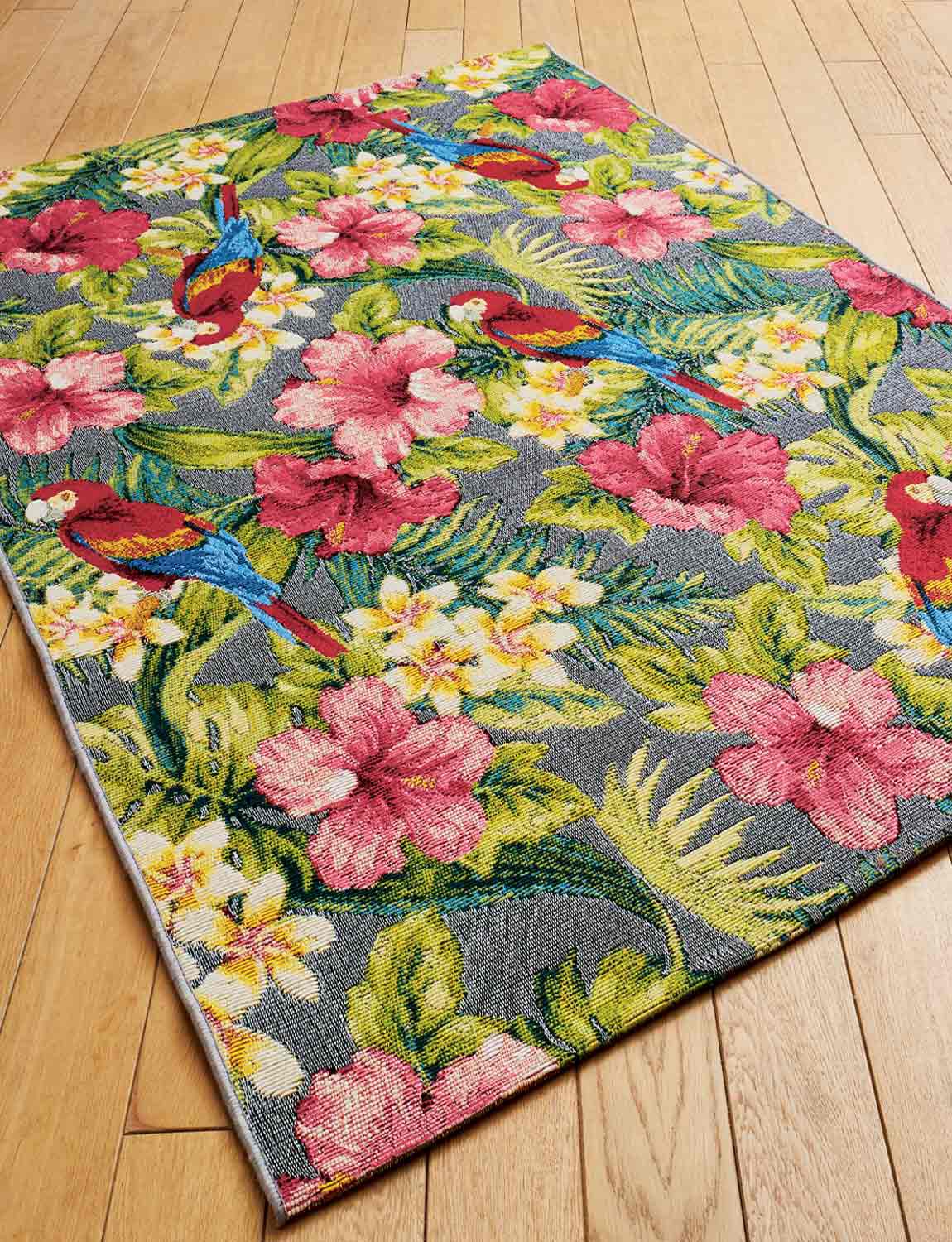 Make a splash with this epic indoor/outdoor Tropical rug. Machine woven soft feel polypropylene.