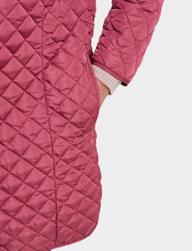 Popper fastening lightly quilted showerproof jacket with 2 side pockets.