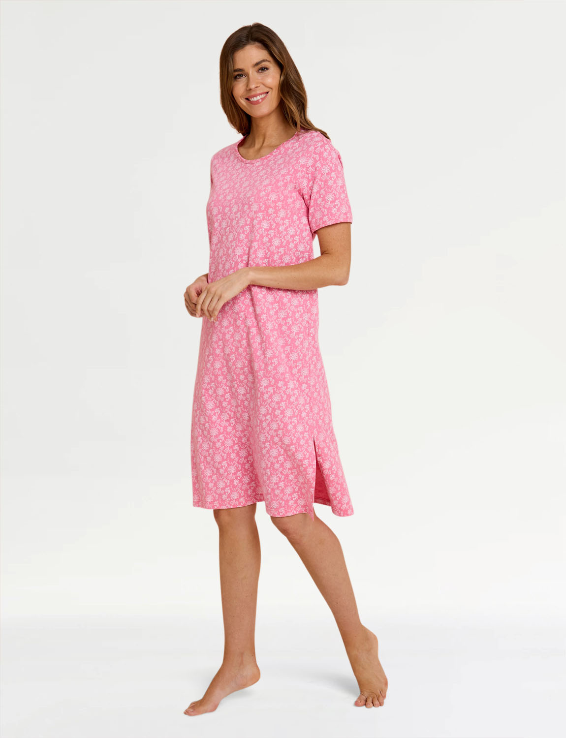 Each nightdress in this fantastic pack of three is made from breathable cotton and has been designed to keep you warm in winter and cool when the temperature starts to rise. Falling just below the knee, these short sleeve nighties are also easy to put on and take off. With no buttons, zips or awkward cuffs, they simply slip over your head.