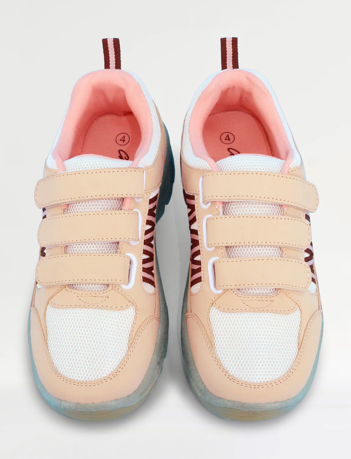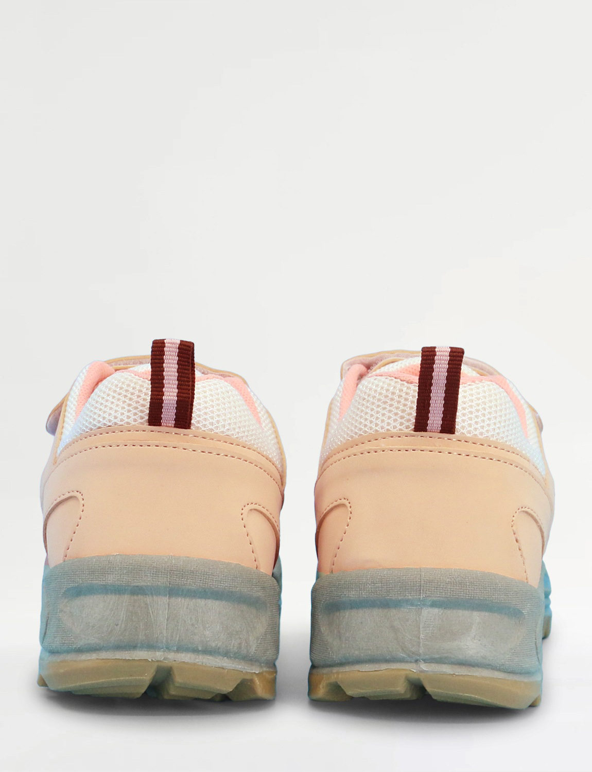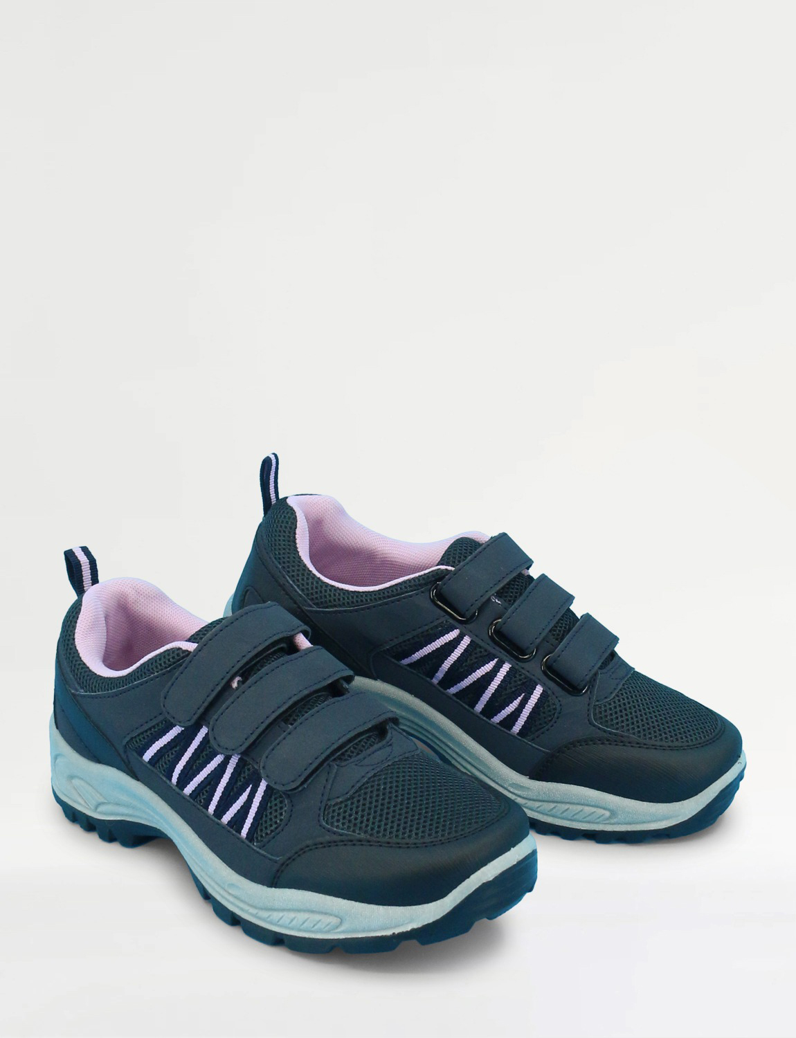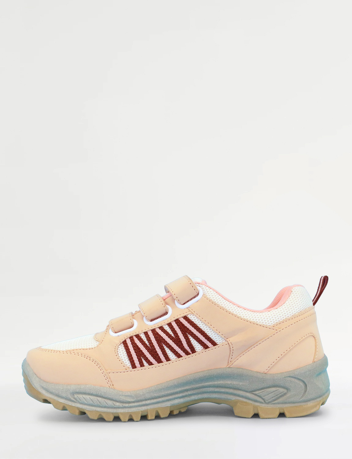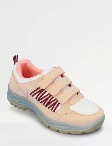 Touch fastening for an adjustable fit. Cushioned ankle collar and a sturdy outdoor sole unit.
