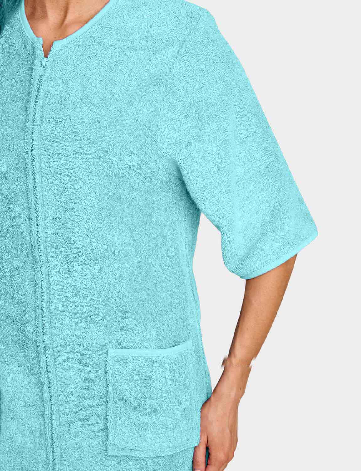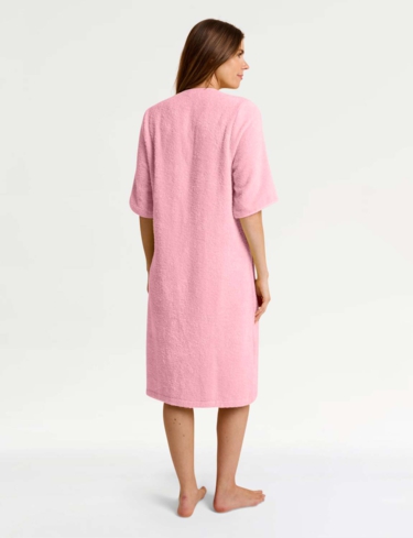 Made from a soft cotton towelling fabric, this dressing gown is ideal if you’re looking for a house coat that will keep you warm and cosy during those cold evenings and chilly winter mornings. Simply wear it over your nightdress or pyjamas. However, thanks to its three quarter length sleeves and breathable cotton, it can also be worn as a cool single layer when temperatures start to rise.