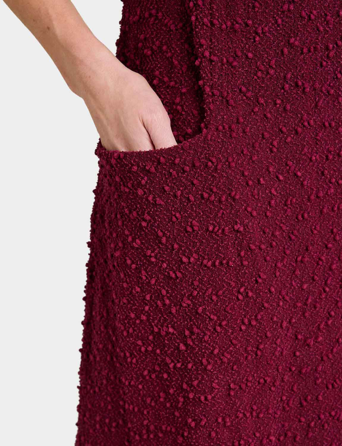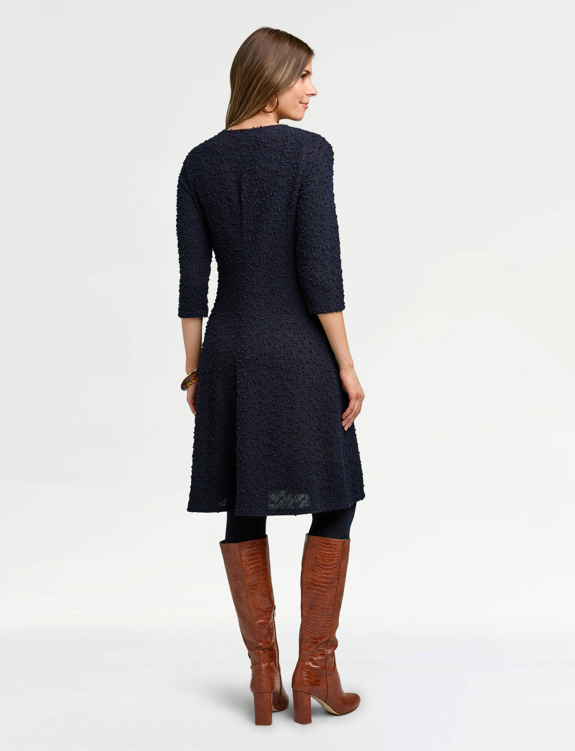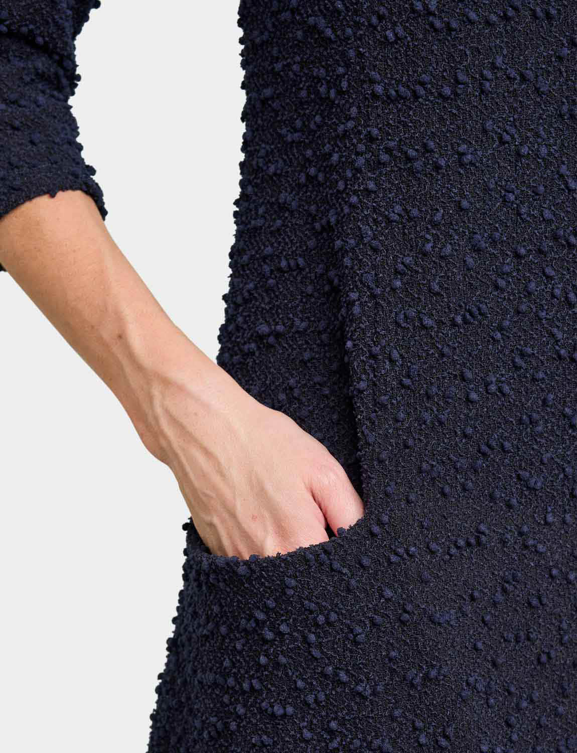 A-line shape dress with three quarter sleeves and 2 handy front pockets in a knitted boucle textured fabric.
