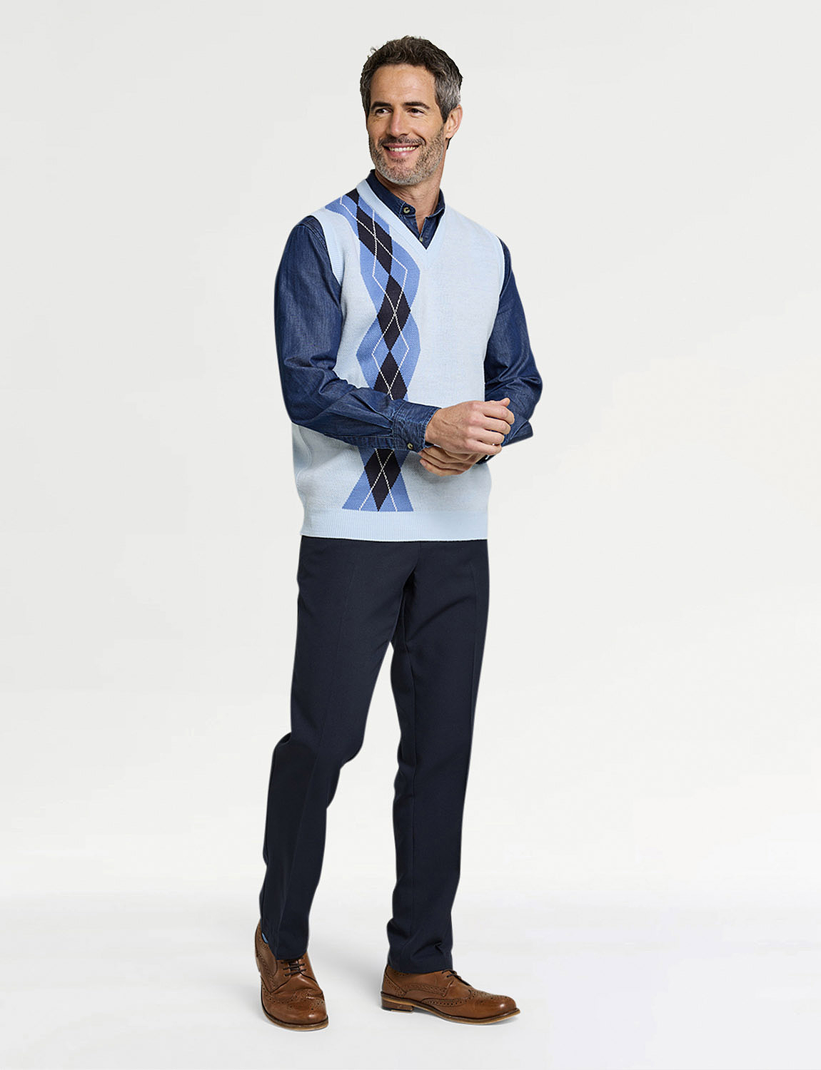 With its traditional argyle pattern, this slipover adds quiet visual interest that complements both casual and smarter attire. The muted motifs work well over a crisp shirt or polo, lending a gentle nod to classic style without overwhelming your outfit.