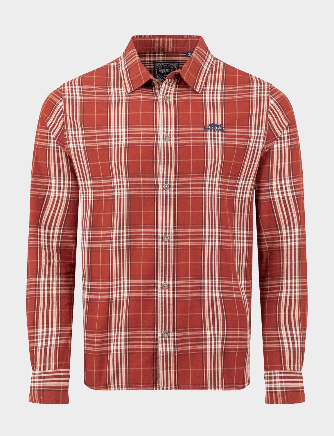 The Weird Fish Lando Long Sleeve Check Shirt. Embroidered Weird Fish logo and made with 100% cotton.