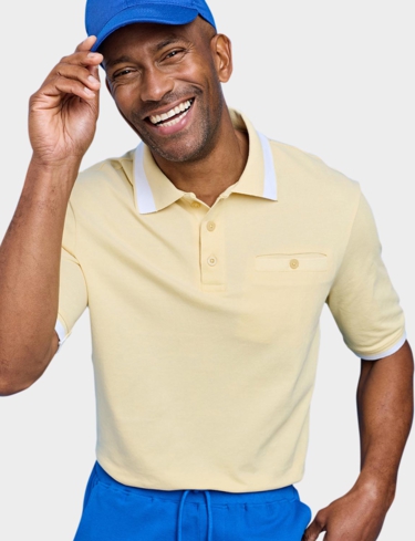 These polo shirts are made from soft cotton with 3 button placket, ribbed collar & cuffs and a button fastening chest pocket. Royal/Coral or Mint/Lemon per pack of 2. Approx length 29".