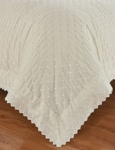 Classic elegance for your bedroom. Luxury bedding enhanced with broderie anglaise embroidery and lace trim in 180 thread count poly/cotton percale. Quilt sets include 2 FREE pillowcases (one with single size).